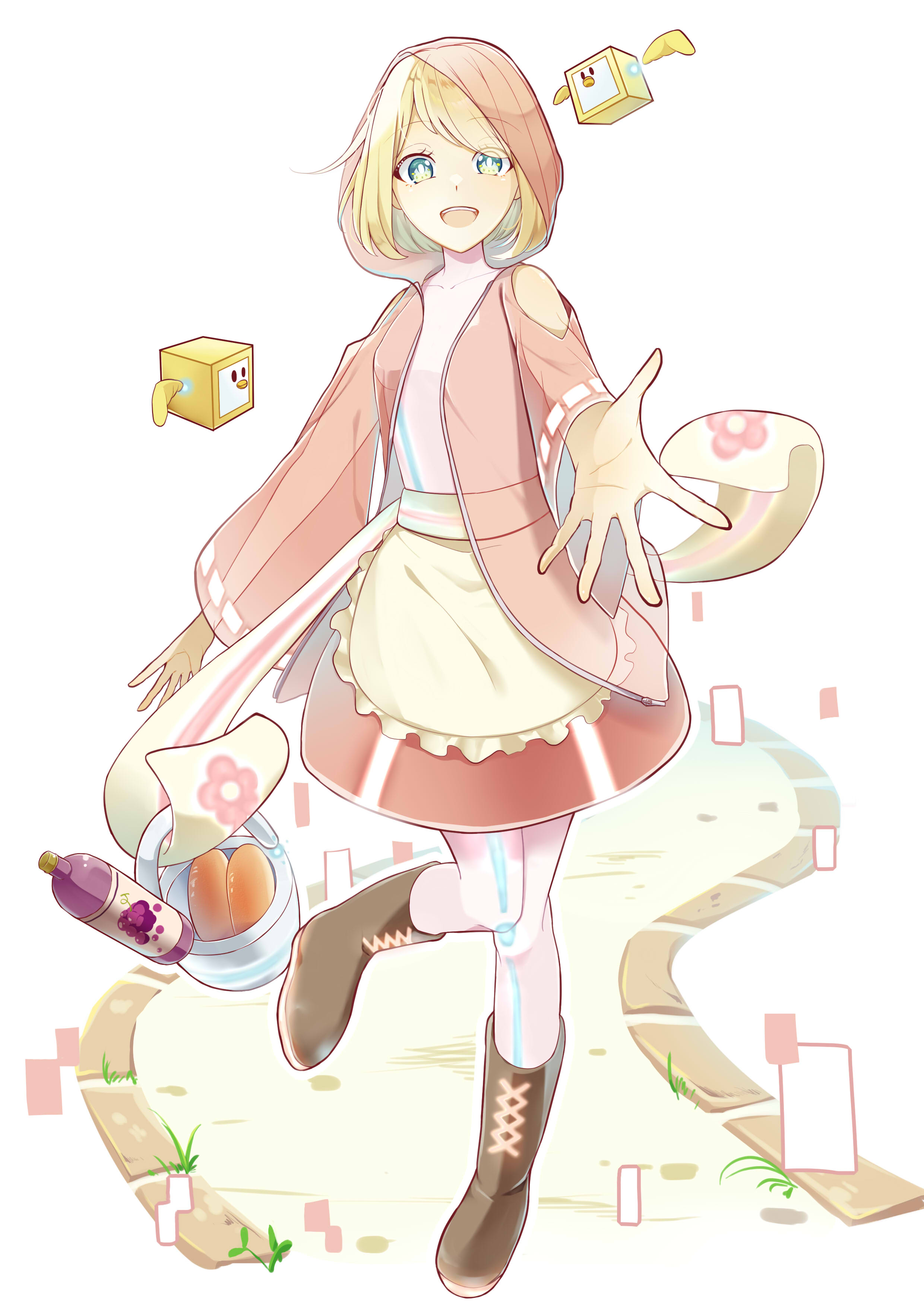 「大正ロマンをテーマにして、お出かけしている女の子を描いた。着物の柄は桜にして春らしく、服や小物にピンク色を使い可愛いと感じられるようにした。」